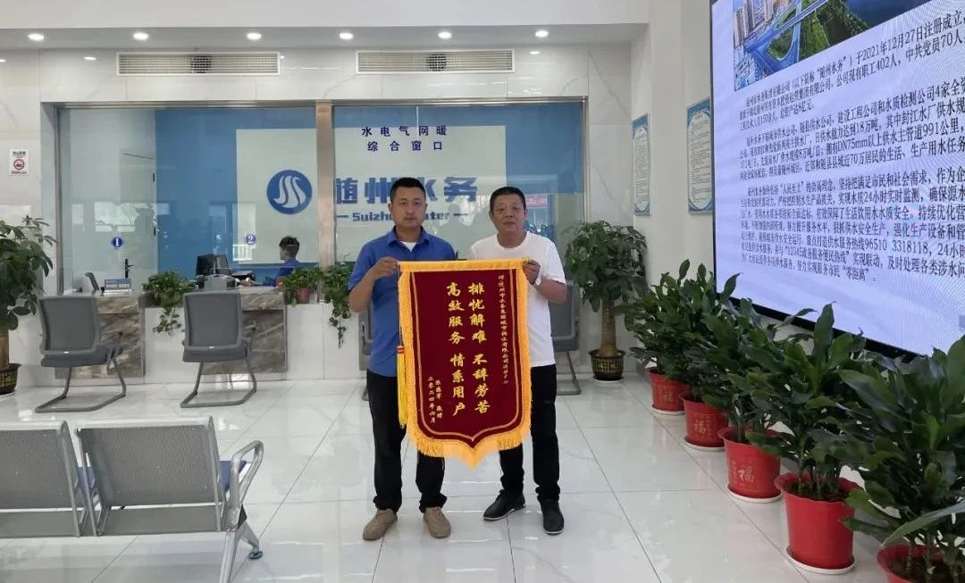 “太感謝你們了,沒想到這么快就能完工,終于解決了我們的用水難題!”近日,湖北省隨州市地稅小區(qū)用戶將印有“排憂解難不辭辛苦 高效服務(wù)情系用戶”字樣的錦旗送到該市水務(wù)集團(tuán)城市供水有限公司運(yùn)維中心,對(duì)工作人員盡職盡責(zé)、主動(dòng)為民排憂解憂的暖心服務(wù)表示感謝。